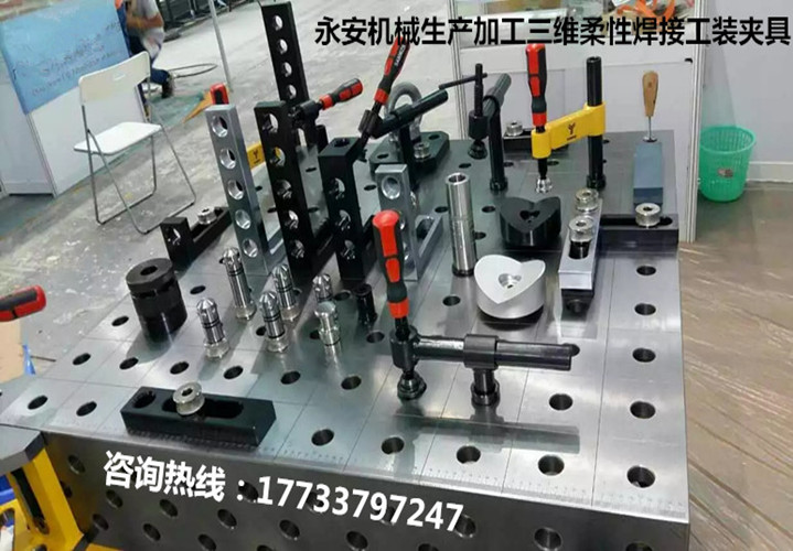 永安機械承攬三維柔性焊接平臺的設計、生產、安裝企業。我公司是三維柔性焊接平臺的生產企業,我們以優惠的價格,的售后服務,全心全意與您合作。我公司誠招全國經銷商,我們給代理商適當的利潤空間,讓我們共同發展。我公司還配有規格種類齊全的工裝夾具,異型可以定做。