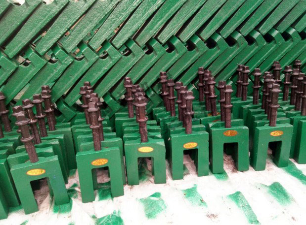 將調整墊鐵分別放在機床各受力點下,每個墊鐵均受力后,然后調整墊鐵。可調整高度為3mm--15mm鑄鐵調整墊鐵調整方便,遷移靈活,不用打洞埋設地腳螺絲,不破壞地面,是機床設備安裝工藝的一大改革。能改善同床動態特性,提高機床加工精度,具有防震、降低噪音之功能。省工、省時、省材料、綜合經濟益高。為設計部門解決了因設備選型困難,造成地面基礎無法確定的矛盾。通用性廣,適用安裝各類機床與設備。