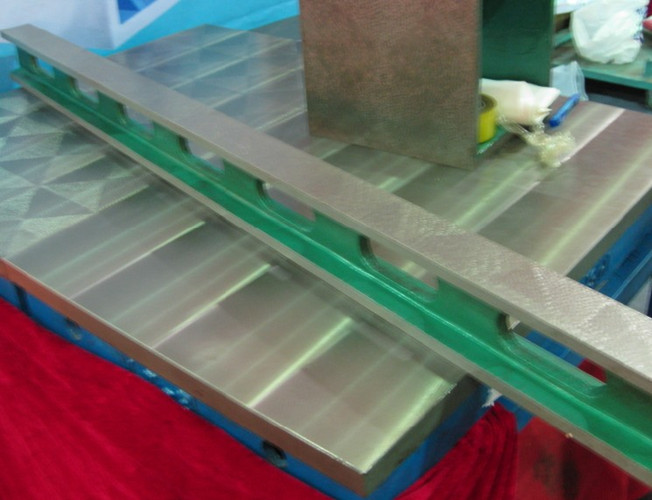 鑄鐵平尺的材質采用細密的灰口鑄鐵或合金鑄鐵等材料按JB/T7977-99標準制造,常規加工方法采用機械加工和人工刮研工藝,也可以手工研磨。常規鑄鐵平尺有兩個工作面,工作面采用刮研工藝,使測量的精度更高,平行平尺的工作面不能有嚴重影響外觀和使用性能的砂孔、氣孔、裂紋、夾渣、縮松、劃痕、碰傷、銹點等缺陷,否則會使測量失真。平行平尺的使用檢測時,由它的兩個工作面配合水平儀,千分尺等輔助測量, 平行平尺用于檢驗各種導軌的不平和不直度,檢驗零件之間的垂直度,還可以用于設備的安裝調試。