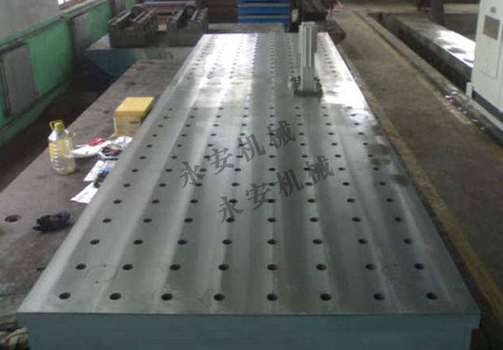 鑄鐵平板又稱鑄鐵平臺,外觀基本上是箱體式,工作面有長方形、正方形、圓形等,材料為HT200-300,QT400-600,采用刮研工藝,工作面上可加工V形、T形、U形槽、燕尾槽、圓孔、長孔等,是用于工件、設(shè)備檢測、劃線、裝配、焊接、組裝、鉚焊的平面基準(zhǔn)量具。