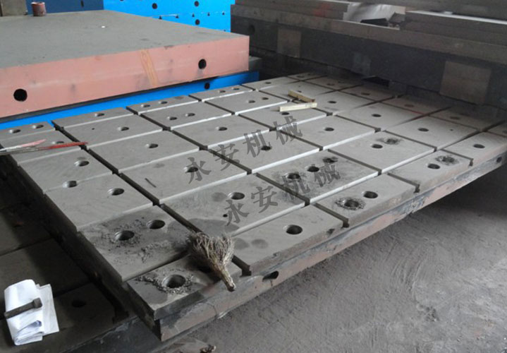 火工平臺(tái)按JB/T7974-1999標(biāo)準(zhǔn)制造,產(chǎn)品制成筋板式和箱體式,工作面有長(zhǎng)方形、正方形或圓形,材料HT200-300,QT400-600,ZG15-45三種。火工平臺(tái)/火工平板工作面采用刮研工藝,工作面上可加工V形、T形、U形槽、燕尾槽、圓孔、長(zhǎng)孔等?;鸸て脚_(tái)是用于工件檢測(cè)或劃線的平面基準(zhǔn)量具。