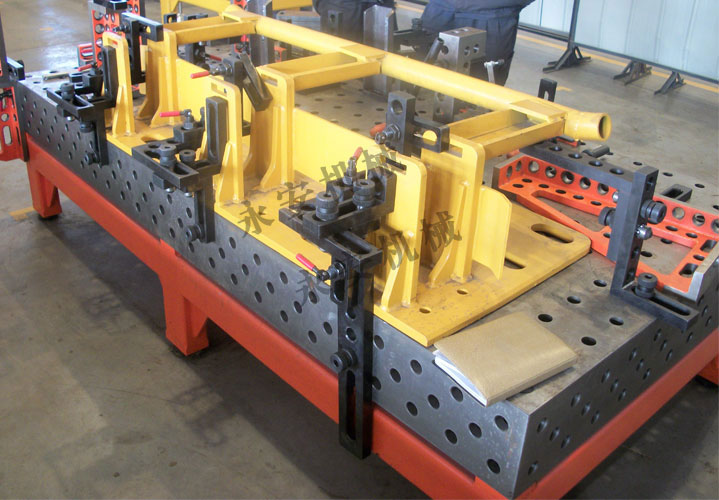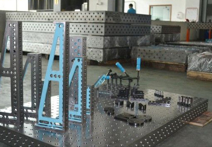 三維柔性焊接平板的主要特點就是從平臺到附件都是標準孔沒有傳統的螺紋或t型槽,配合快速鎖銷就能使裝配變得更加快捷方便,定位更精確。